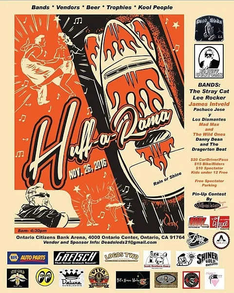The Huffarama Kustom Kar and Bike show honoring the life of the great Kustom car builder Mr. Bo Huff. Pin Up contest, Food, Vendors, Record Hop, Beer, Trophies and much more. Rain or Shine. Open to Kustoms, Lowriders, Bombs, Rigs, Bikes....anything Kool!