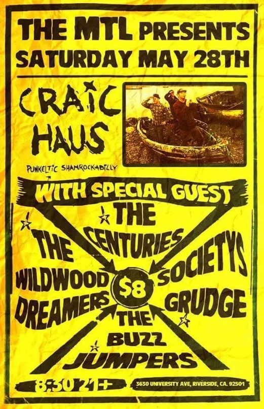 Who: Craic Haus, The Centuries, The Buzz Jumpers, The Wildwood Dreamers, Societys Grudge