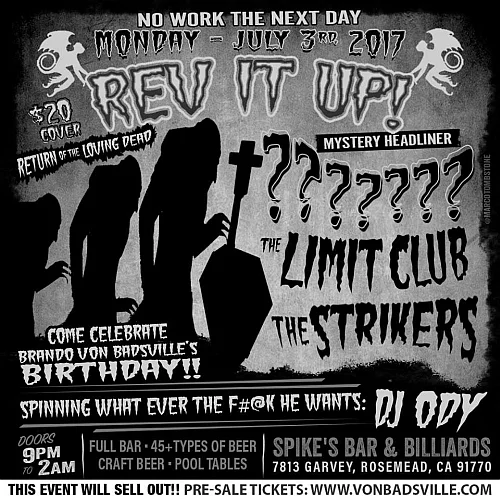 Who: ***MYSTERY HEADLINER*** along with The Limit Club (AZ), The Strikers (San Diego)